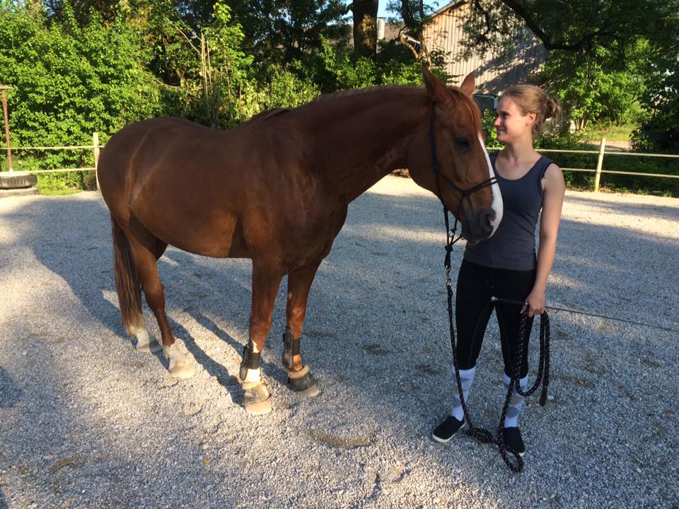 Die Reitbeteiligung eines tollen Fuches bat mich um Hilfe beim Umgang mit dem Wallach. Auf dem Platz sei das Reiten kein Problem, außer er erschrickt vor etwas. Dann ist schon mal Panik angesagt. Beim Ausreiten geht auch alles gut, solange er sich vor nichts erschrickt. Dann steigerte er sich so rein, dass sie absteigen musste, weil er drohte, durchzugehen. Als er sich dann einmal losriss und alleine zum Stall lief, wollte sie unbedingt etwas ändern. Denn das kann sehr gefährlich für beide Parteien ausgehen. Auch hier suchte er die Sicherheit und den Schutz bei ihr, wenn er vor etwas scheute. Da er sie nicht als Leittier sah, fehlte auch der Respekt, um sich nicht einfach loszureissen und wegzurennen. Er umkreiste sie, drängte sie zur Seite und war wirklich schwer zu halten. So begannen wir mit der Bodenarbeit mit einfachem Führtraining. Er musste lernen sie nicht zu überholen oder zu drängeln, egal in welcher Situation. Seine Aufmerksamkeit auf sie zu richten und die Führung an sie abzugeben. Ganz nach dem Motto: Wo sie ist, kann mir nichts geschehen. Ich kann mich beruhigen. Nach nur zwei Einheiten besserte sich sein Verhalten merklich. Sie übte wirklich unermüdlich und schließlich blieb er neben ihr - egal was war. Und das Wichtigste daran war - es funktionierte auch im Gelände. Auch wenn er nervös wurde, folgte er ihr gehorsam in den Stall. Die beiden übten sogar so fleißig, dass sie in auf dem Platz völlig frei - nur durch Handzeichen im Slalom durch Hütchen schicken konnte. Es sind manchmal kleine Veränderungen, die Großes Bewirken. Ich wünsche euch zwei viele entspannte und tolle Ausritte.